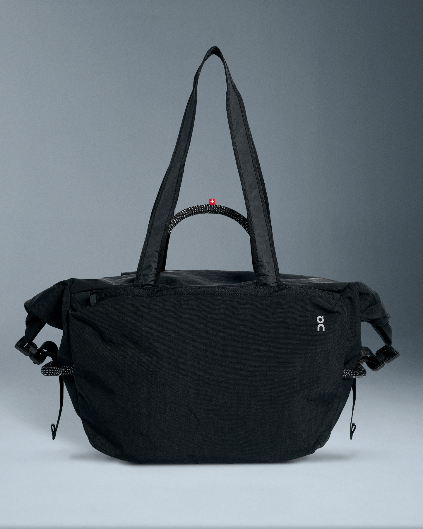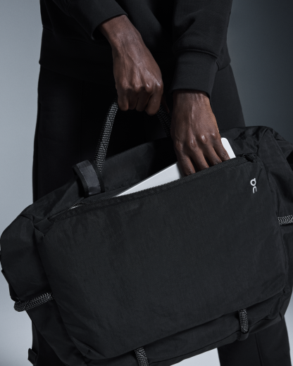 With large front pocket with roll top closer